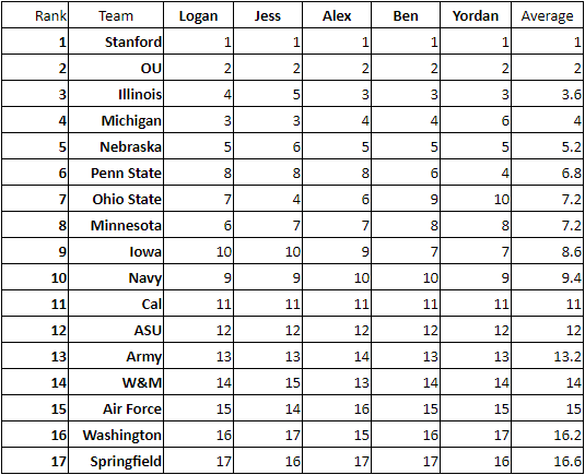 #NCAAMGym Week 5 Power Rankings