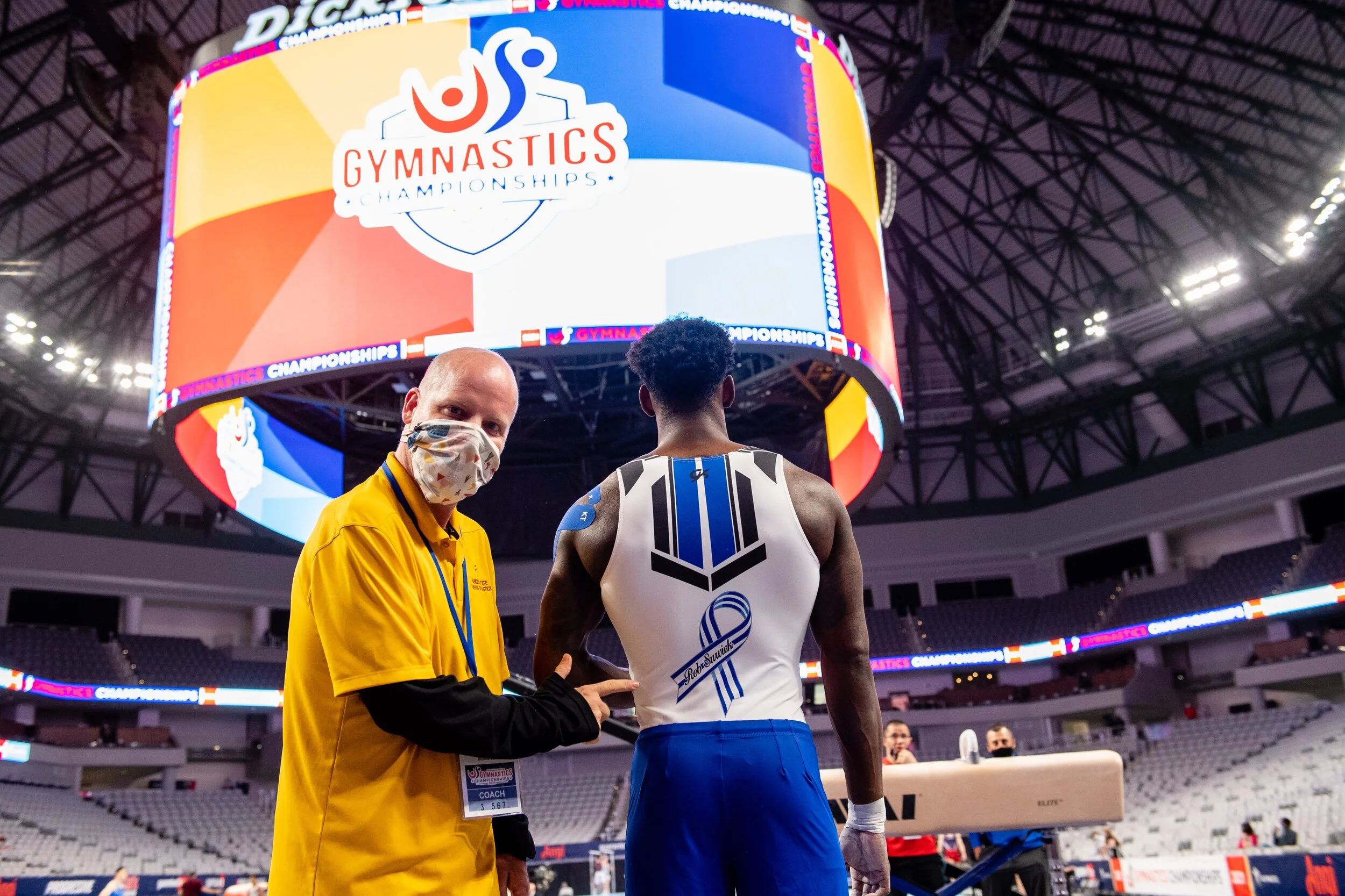 In August of 2020, ASU assistant coach, Rob Survick, was diagnosed with the neurodegenerative disease ALS (Lou Gehrig’s Disease). Since that moment, Rob has been fighting for his life. On the first day of competition,ASU superstar, Kiwan Watts, donned a blue uniform with a ribbon inscribed with Rob’s name to bring light to the cause. It is clear the ASU family is behind Rob and the CGA encourages all of our followers to do what they can to support Rob and the ASU family in their fight as well.