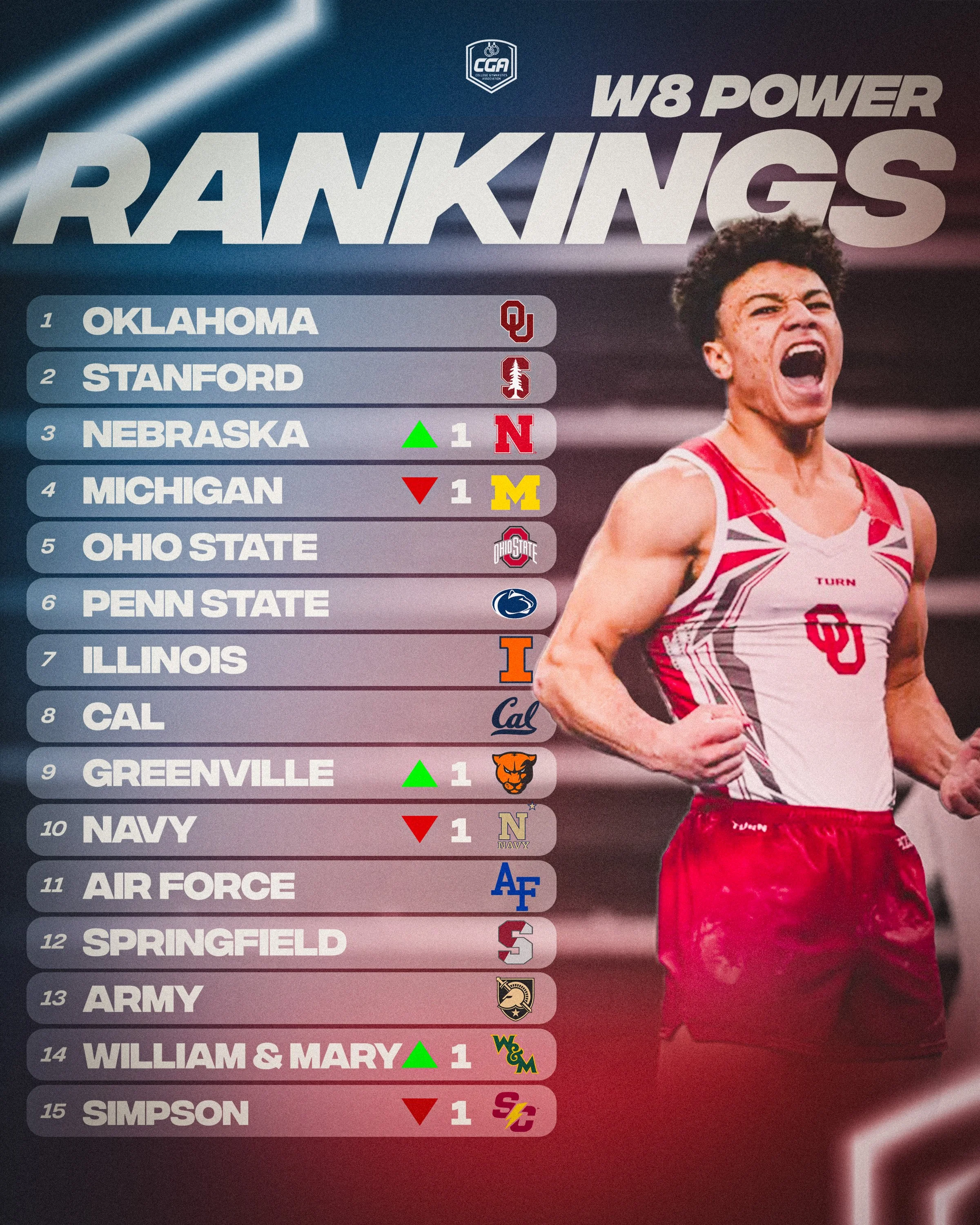 Week nine is shaping up to be a great one! Oklahoma’s senior night will be one to watch for next weekend, as the Cal Bears will be visiting the Sooners in Norman. There are multiple Big Ten dual matchups this weekend as Penn State will be at Michigan and Ohio State at Illinois. The ECAC will also have a packed schedule with Springfield College at Army and Navy at William and Mary. Lastly, Greenville and Nebraska will be traveling to Simpson for another regular-season competition. Make sure to check the schedule so you don’t miss any of the action!